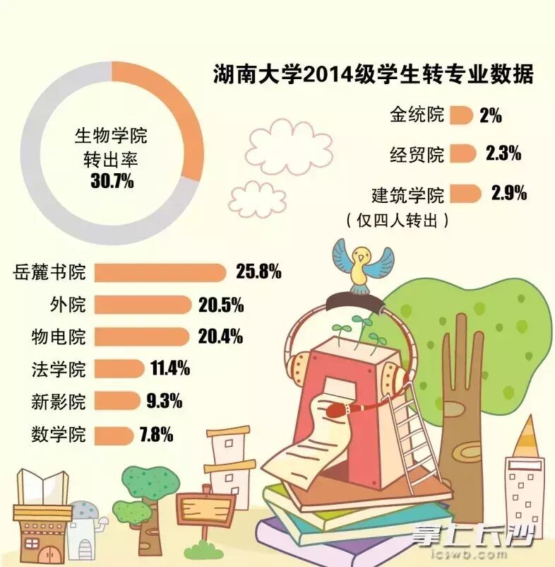 記者梳理(lǐ)湖(hú)南(nán)大(dà)學2014級學生•'(shēng)轉專業(yè)名單發現(xiàn),生(€☆ε☆shēng)物(wù)學院的(de)轉出率高(gāo)達30.§→™σ7%,其次是(shì)嶽麓書(shū)院、外(wài)院¶≥ 、物(wù)電(diàn)院。轉專業(yè)的(d§↑ e)同學大(dà)多(duō)轉去(qù)哪裡(lǐ)?調查顯示,2≤≥←→014級共420人(rén)轉專業(yè),↓♥♥其中183人(rén)轉入經濟類學科(kē)(工(gōng)管院、金(jīn)×σ✔β統院、經貿院),占比約43.6%。轉專業(y♣Ω≈ è)原因中,53.85%出于學習(xí)興趣,38.46%↓₩≤同學是(shì)因為(wèi)就(jiù)β>×業(yè)前景。